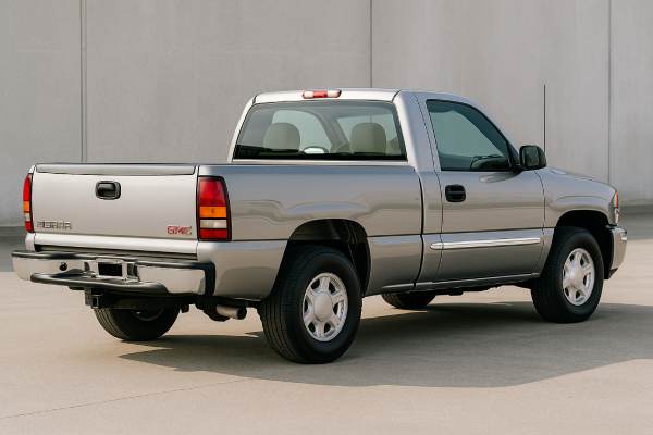 Within that range, the LU3 4.3-litre V6 served as the base engine for many GMC Sierra 1500 2WD configurations. In 2-door regular-cab, short-wheelbase form with rear-wheel drive, it gives you a relatively compact full-size truck: around 5.16 m long and 1.99 m wide, with a wheelbase close to 3.02 m in typical C1500 short-bed spec.
