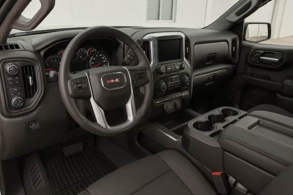 • Fleet trucks may have vinyl floors and cloth bench seats, while SLE and Elevation models bring carpet, split benches or buckets, and upgraded infotainment screens.