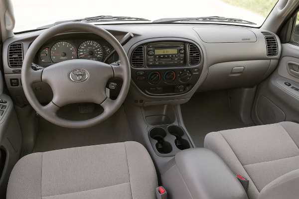 Inside, the Tundra sits between a midsize and a full-size truck in cabin space. Access Cab models provide usable rear jump seats for occasional passengers, while Double Cab versions (introduced for 2004 in some markets) offer proper rear doors and more legroom. The dashboard is simple, with large rotary controls and clear gauges.